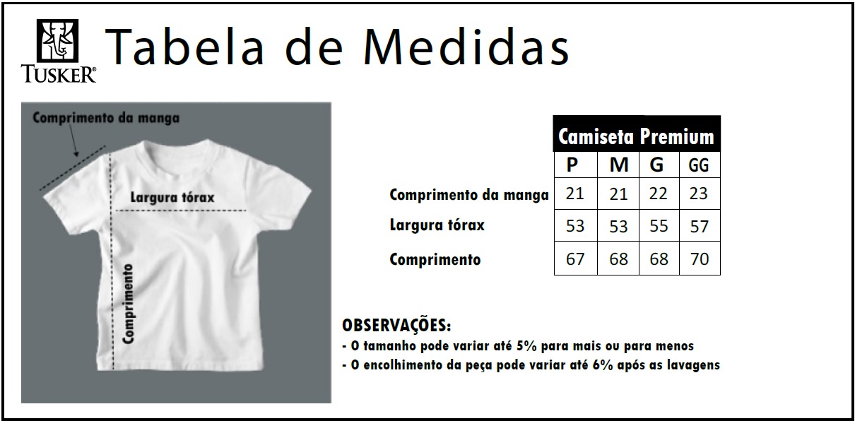 OBS: A cor da camiseta pode variar para um pouco mais clara ou mais escura dependendo da iluminação e da câmera fotográfica.